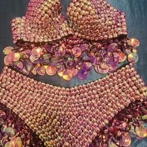 Brand new, absolutely gorgeous rave/Festival Outfit. It has never been worn. Top is pretty small, about an a or b cup? UK Size 10! Paid $125 including shipping. The details are very intricate & gorgeous.