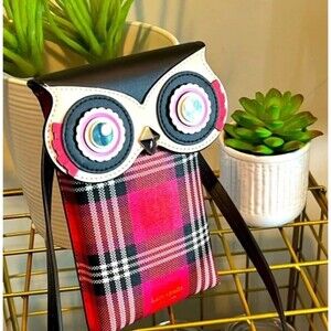 Kate Spade Blinx North South Phone Owl Plaid Crossbody ~EUC~