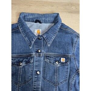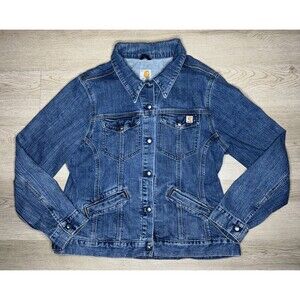 Carhartt For Women Denim Trucker Jacket Stretch Blue Snap Front Dark Wash XL