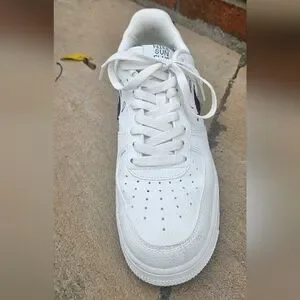 Stylish Nike sneakers in white with gold accents. Comfortable and trendy design.