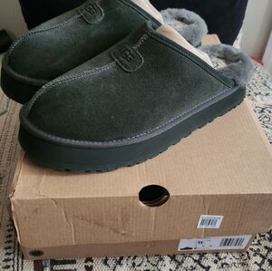 Luxurious dark green suede slip-ons by UGG. Soft lining for ultimate comfort.