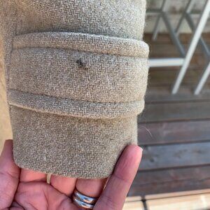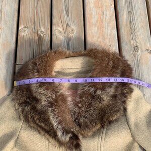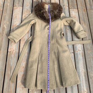 Vintage 50s 60s Union Made Oatmeal Wool Fur Trim Collar Long Belted Overcoat