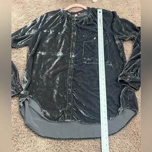 Large Anthropologie pilcro velvet femme button down collarless shirt grey gray