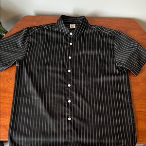 Hardaddy Black Pinstripe Men's Short Sleeve Button Up Hawaiian Men’s Blouse