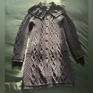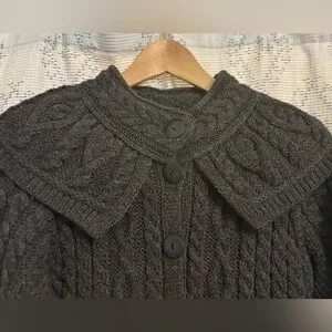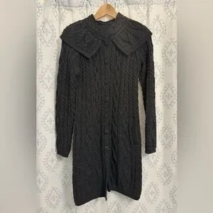 EUC - Aran Crafts 100% Merino Wool Cable Knit Sweater Coat (Charcoal Gray)