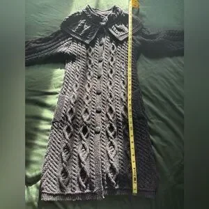 Thanks for stopping by and having a look! This is a warm and cozy Aran Crafts sweater coat. It’s a charcoal gray color and has pockets 😊. Has a great shawl collar for an extra little layer on chilly days. In EUC with no holes, tears, or flaws. 100% Merino Wool. See pictures for measurements, tags, and care instructions. (If you need any additional, please feel free to message me.) From a smoke-free, pet-free home. All reasonable offers considered!