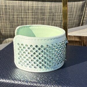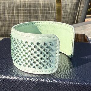 EUC! Prada Crystal-Embellished Leather Mint Aqua Cuff Bracelet
