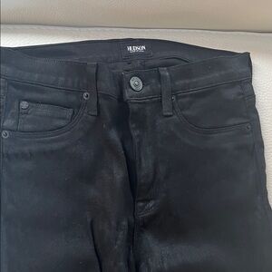 Hudson “Barbara” high waist wax coated skinny jeans.