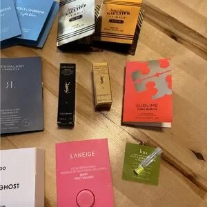 All items are brand new and sealed. Huge beauty bundle of assorted luxury makeup and perfume/cologne items. Several travel sized items and many samples. Brands include, but not limited to: Makeup by Mario, Tory Burch, Revitalash, Byredo Mojave Ghost (3 items), Yves Saint Laurent, Dolce & Gabbana, and so many more!