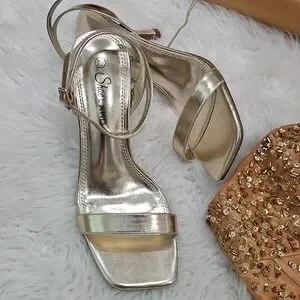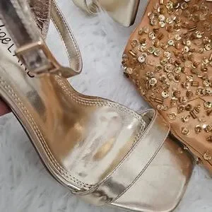 Bundle-Gold Strapless Party Dress with Scarf & Heels