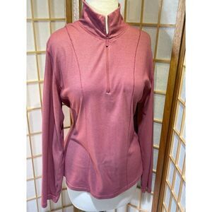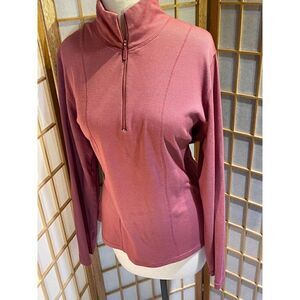 Red and white checked quarter zip from Woolrich. Size large. Zippered pockets with mesh lining. 85% cotton, 15% polyester. Machine washable. Made in China. Excellent condition. Nonsmoking home.
