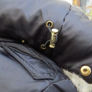 This coat is modern luxury!  It has a sleek design with a touch of glamour. Features: faux fur lined hood, removable hood, gold toned snaps, buttons, zipper and zipper pull, double zipper, cinched waist, 2 chest pocket with snap closure and zip front pockets.  Polyester, machine wash/dry.  Approx measurements laid flat: length 32" sleeves 24" chest (p2p) 18". Very flattering.