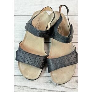 NAOT Women’s Vivian Wedge Sandal Jet Black Adjustable Buckle Size EU 38