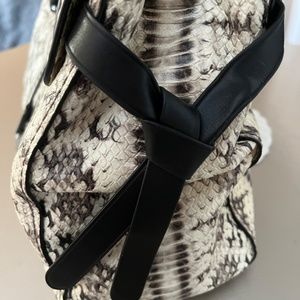 Michael Kors Leather Snakeskin Print Chain Key Lock Crossbody Satchel