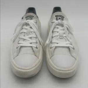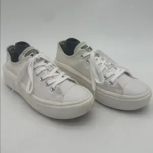 Step up your style with these classic white platform CTAS Move sneakers. Designed for comfort and a sleek look, they're perfect for any casual outing. Women’s size 9.5. Great clean preloved condition. Small inside heel hole, faded stains on heels. Priced to sell. BNSHW033