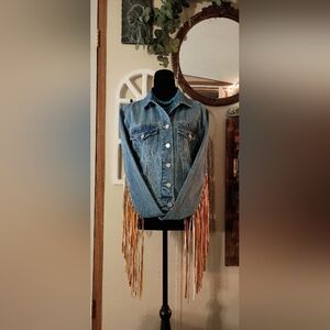 This Jean jacket is one of the cutest I have come across in a while!! The multicolored fringe is so long and flowy!! It makes for such a fun piece!!