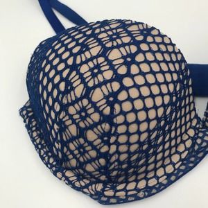 Victorias Secret Very Sexy Lightly Lined Plunge Bra Beige Blue Lace