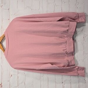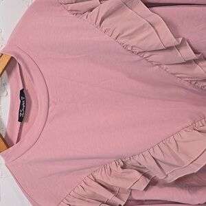 Simplee Dropshoulder Ruffled Sleeve Sweatshirt Casual Oversized Pink Pullover S