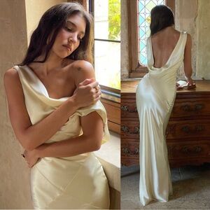 House of CB Safaira Buttermilk Satin Draped Cowl Neck Maxi Dress Size XS NWT!