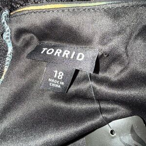Vibrant maxi dress with a multicolor pattern. Features black trim accents. Sleeveless design.