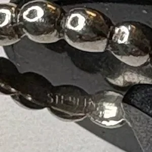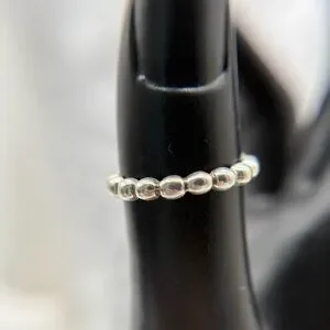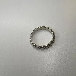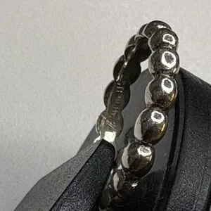 Elegant narrow beaded design band ring. Smooth inside. Marked sterling. Wear alone or stacked. May show scratches from normal wear. Size: 6.75 unisex, about 3mm wide