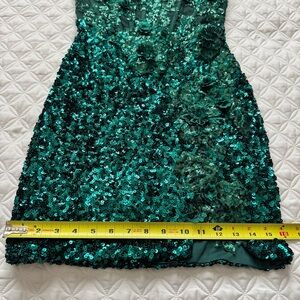 STACEES Dark Green Floral Sheer Corset Sequin Mini Spaghetti Strap Dress Sz 2