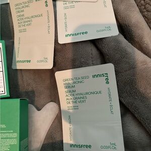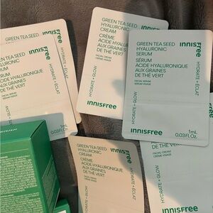 Innisfree skincare set with various products. Includes green and white packaging.