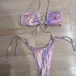 Embrace the summer vibes with this stylish pink tie-dye bikini set. Perfect for beach days and poolside lounging.
