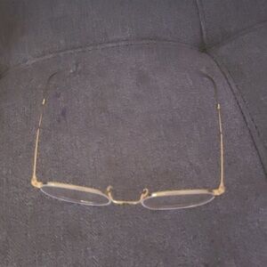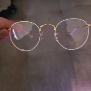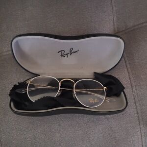 Elegant Ray-Ban eyeglasses with sleek gold wireframes. Includes branded case.