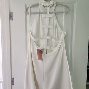 Chic white mini dress with a halter neckline. Never worn, perfect for Bachelorette party!