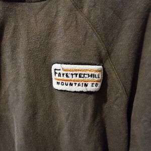 Keywords: Fayettchill, hoodie, pullover, olive green, mountain co, made in usa, mens, large, casual, comfortable, sweatshirt, patch, raglan sleeves, outdoors