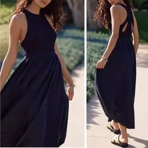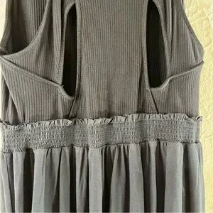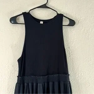 In excellent used condition no rips, tears or stains. From breaking a sweat to breaking into your day, what you wear shapes how you show up. Black dress with a ribbed upper, smocked waist, high neck, racerback with cut outs and pull over styling.
