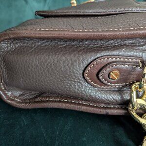 Michael Kors handbag in brown leather with leopard print flap; closes with gold tone toggle. Flap is dyed hair calf. Gold hardware. Has one leather handle and one leather strap.