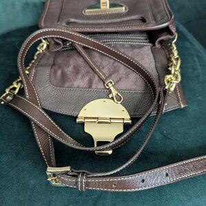 Michael Kors Brown Leather and Calfhair Margo Top Handle Satchel Bag