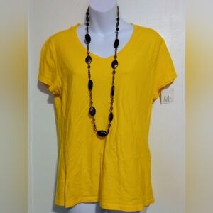 Bright yellow V-neck T-shirt. Perfect for casual outings.