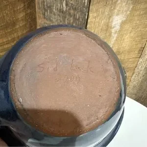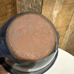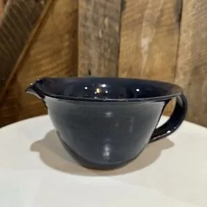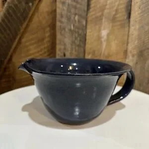 Vintage 2000 Sid Luck Pottery Blue Mixing Bowl Spout & Handle Signed Farmhouse