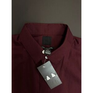 New H&M Slim Fit Dress Shirt Mens Long Sleeve Button Up Burgundy Casual