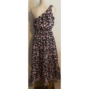 Women's Unbranded Black Pink Floral One Shoulder Dress L