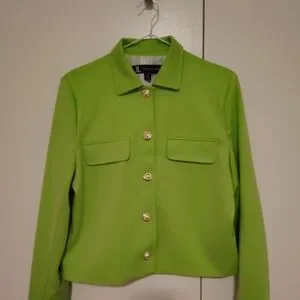 Elevate your style with the Women's Green Jacket. This chic piece features a vibrant green color, perfect for adding a pop of color to any outfit. Designed with a classic collar and button-down front, it's both stylish and versatile.