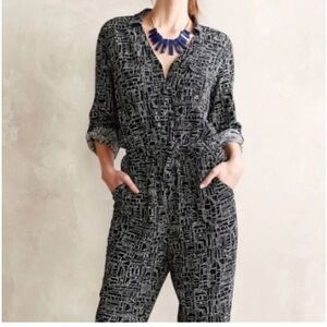 Anthropologie Lilia Black and White Geometric Patterned Jumpsuit