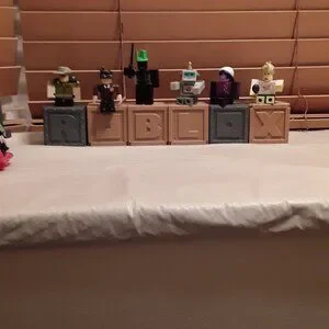 Mystery boxes that spell out ROBLOX (all open up), each came with a figurine: