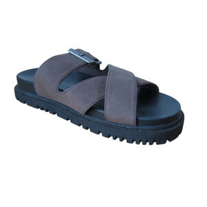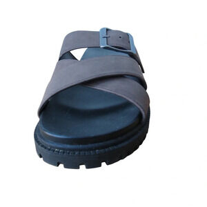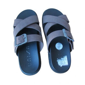 Unisa Womens Brown Buckle Sandals Size 5.5 Strappy Flat Slip On Shoes Outdoor