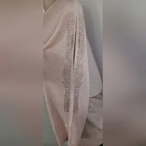 Elegant knit sweater with V-neck. Features loose sleeves and delicate detailing.
