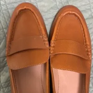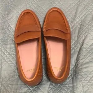 Stylish tan loafers by J. Crew. Comfortable and versatile.