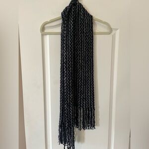 EUC excellent condition & quality! Elegant textured scarf with a blend of black and gray. Ideal for a chic look. Lightweight. Soft with fringe. Acrylic and nylon blend. Made in Italy. Measurements in photos. OS