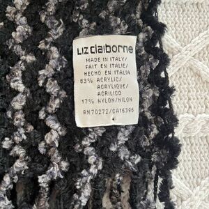 Liz Claiborne Black and Gray Knit Scarf with Fringe Made in Italy
