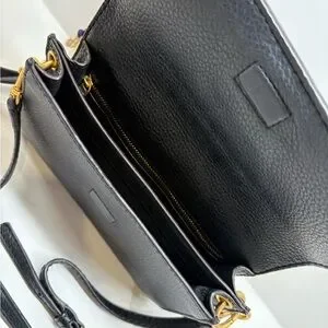 Classic black leather crossbody bag with a sleek design. Perfect for any occasion and in good condition.