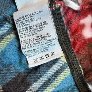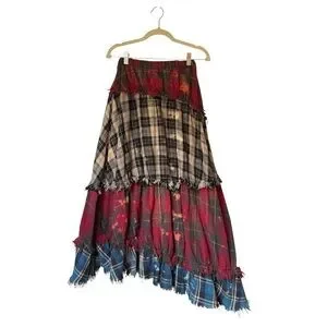 Multicolor plaid flannel (100% Cotton). Maxi. Pull on. 34.5" from waist to hemline. Imported.