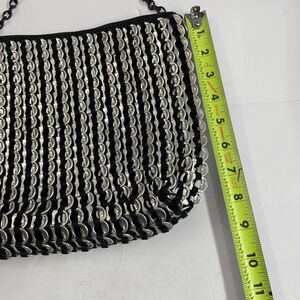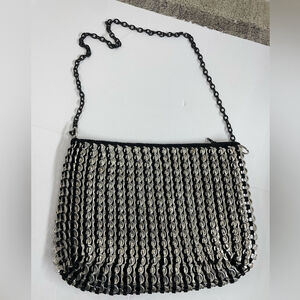 Elevate your style with this chic black and silver chain bag. Perfect for any occasion, this bag combines elegance with a modern twist.