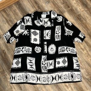 Ulla Popken Womens Size 20 Top Black White Tribal Print Artsy Funky Boho